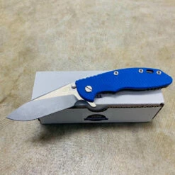 Rick Hinderer XM-18 3.5″ Slicer Tri-Way Battle Blue Finish OD Green G10 Working Finish Blade Knife
