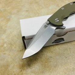 Rick Hinderer XM-18 3.5″ Slicer Tri-Way Working Finish OD Green G10 Flipper Knife