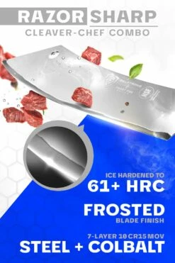 Chef & Cleaver Hybrid Knife 8″ | The Crixus | Frost Fire Series | NSF Certified | Dalstrong ©