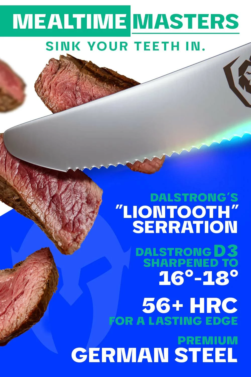 Dalstrong painstakingly combines outstanding craftsmanship, cutting-edge technology, stunning design elements, and premium materials to forge a ruthlessly sharp, highly durable and beautifully elegant collection set. Peak performance never looked so good, to you, or your wallet. Dalstrong Power: Incredibly sharp high-carbon German steel syncs with perfectly engineered geometric serrations at 16-18 degrees per side, ensuring incredible efficiency and effectiveness. Clean, straight cuts with no tearing again and again with angled dentitions which are masterfully robust and resilient, requiring no sharpening. Dalstrong Refinement: Delight your guests with the visually stunning design, superb cutting ability, satisfying heft and premium materials.