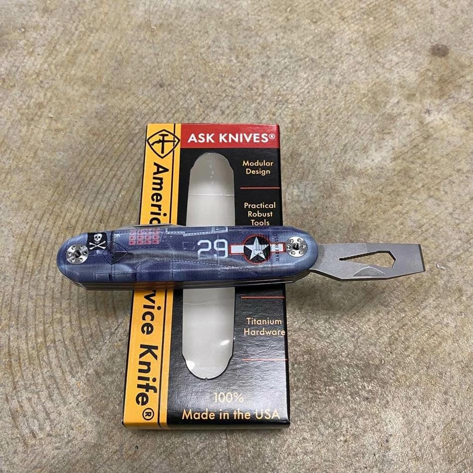 The Jefferson by American Service Knife combines American made steel and craftsmanship in to a modern multi-tool that can be passed down for generations. The blade and tools are made from CPM S45VN, flanked with titanium liners, and topped off with an injection molded handle. The .125″ thick blade and tools will stand up to almost anything that you can put in front of it.
