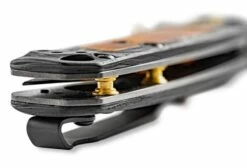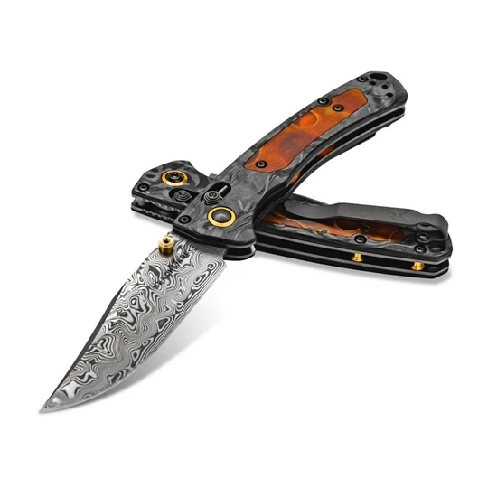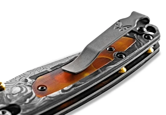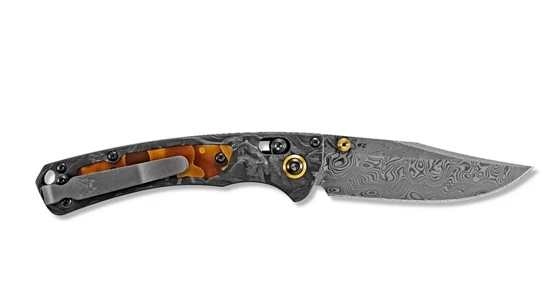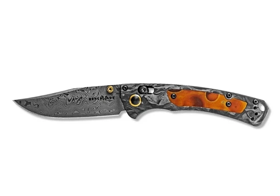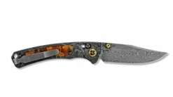 With a new year, comes a new addition to the Gold Class lineup. Hand finished and assembled by our elite craftsmen, the 15085-201 Mini Crooked River carries the proverbial torch of its predecessor in regards to style and class. Dressed in marbled carbon fiber handles, with Raffir® Alume Yellow Moon inlays, and a Vinland™ pattern Damasteel® blade, this Unlimited Limited is a timeless piece that will spend more time in your pocket than it does the safe.