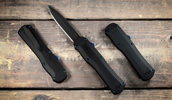 Defined by speed and style, our new 3400 Autocrat is the latest out the front technology for tactical and EDC enthusiasts alike. This knife is Benchmades first OTF to use composite handles, blending the durability and wear-resistance of G10 with a flash of colorful hardware and components. The dual edge CPM-S30V blade provides users with a design for a variety of applications.