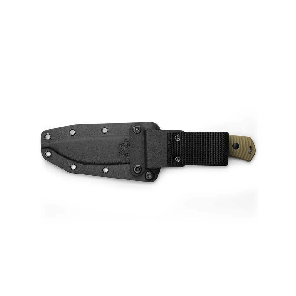“A knife-less man is a life-less man,: says an old Nordic proverb. Head into the sticks with the 539GY Anonimus on your hip and you are prepared for whatever the bush throws at you. This fixed-blade survival knife works for bushcrafting thanks to a CPM-CruWear fixed blade with good edge retention and its low-profile and low-visibility styling. Lightweight and durability make it a tactical knife that can be used for defense, too. Complete with a ferro-rod striking coil, state-of-the-art blade steel with a Cerakote finish, and a blade guard that pulls design inspiration from a Geissle trigger and a Bolteron sheath with ferro-rod loop, make this the knife you need at your side when you are off the grid.