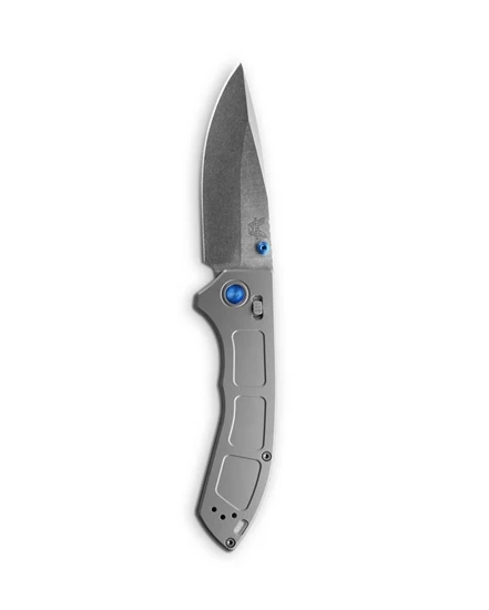 Lean, light, and strong. These are the basic parameters we set fo the 748 Narros but there’s nothing basic about this future forward folder. Coming in at 0.28 inches thick, the titanium handle of the narrows is the slimmest full size frame we’ve ever built, making it the most pocketable, space-saving large knife in our lineup. Accordingly, we’ve also introduced a new take on the AXIS lock, eliminating steel liners and omega springs and subbing in a sleek new lock stud and torsion spring assembly. With the benefit of a thin M390 drop point blade andpop of the PVD coated sapphire blue hardware, this stylish EDC takes ultralight utility to the extreme.