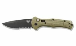 Be the first to review “Benchmade 9070SBK-1 Claymore AUTO Folding Knife 3.6″ CPM-D2 Cobalt Black Combo Blade, Ranger Green Grivory Handles” Cancel reply