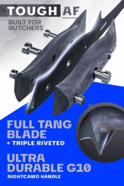 - Precision forged, ultra-sharp, wear-resistant, high-carbon 9CR18MOV steel at 60° Rockwell Hardness