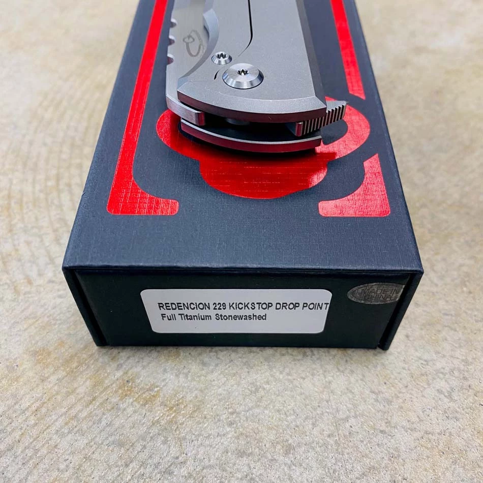 Chaves Redencion 229 Drop Point 3.25″ Machine Finish M390 Blade Stone Washed Titanium Knife