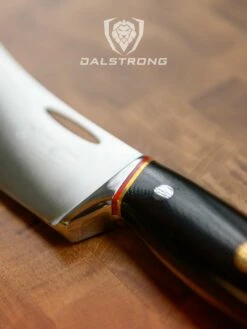 The “Crixus” is a specialty blade, unique to Dalstrong, designed for meat lovers and BBQ enthusiasts. Part chef knife, part cleaver, this hybrid is the go-to tool of choice for those who prepare a lot of meat, especially from start to finish. This blade has the size and weight to slice through tough cuts of meat and bone, while still being maneuverable and versatile enough to wield through the rest of your prep work as well.
