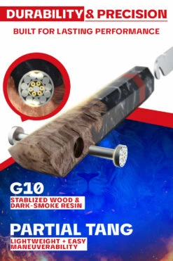 - Meticulously constructed ultra-premium G10 Garolite and stabilized Wood-Resin handle