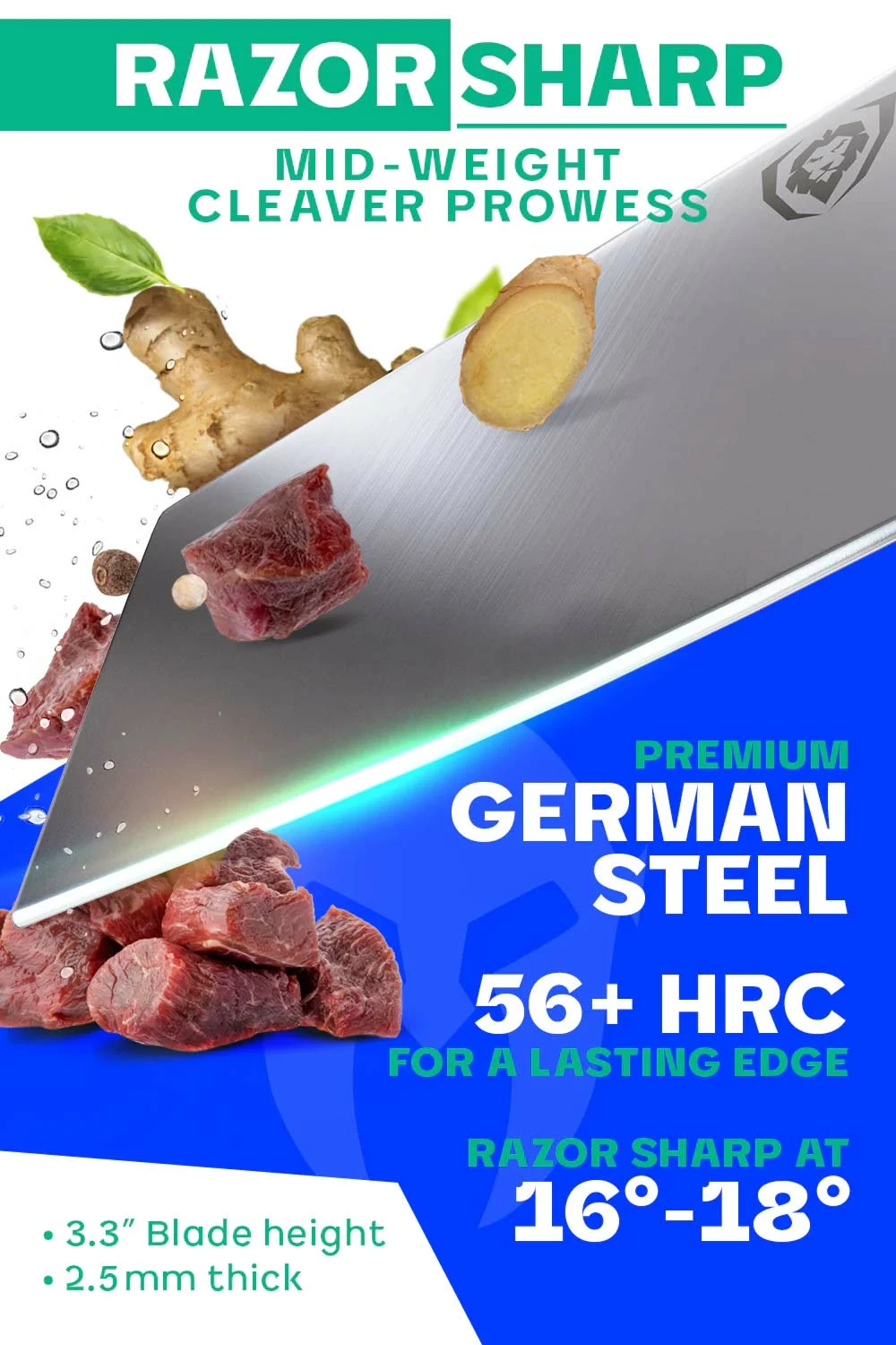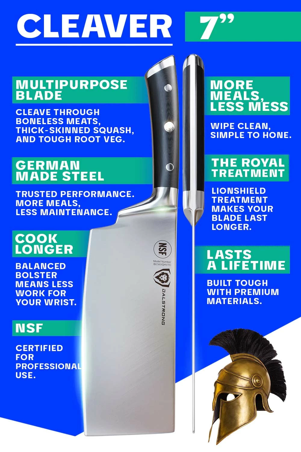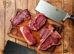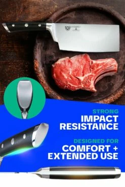 The Dalstrong Gladiator Series 7” medium-duty cleaver is perfect for breaking down larger cuts of boneless meats and poultry as well as dicing, mincing, and chopping tough vegetables and fruits. The extra-wide blades provide excellent knuckle clearance and allow food to be easily scooped up for simple transfer from cutting board to pot or pan. The sharp, flat edge provides more contact with the cutting board and exceptional precision.