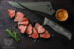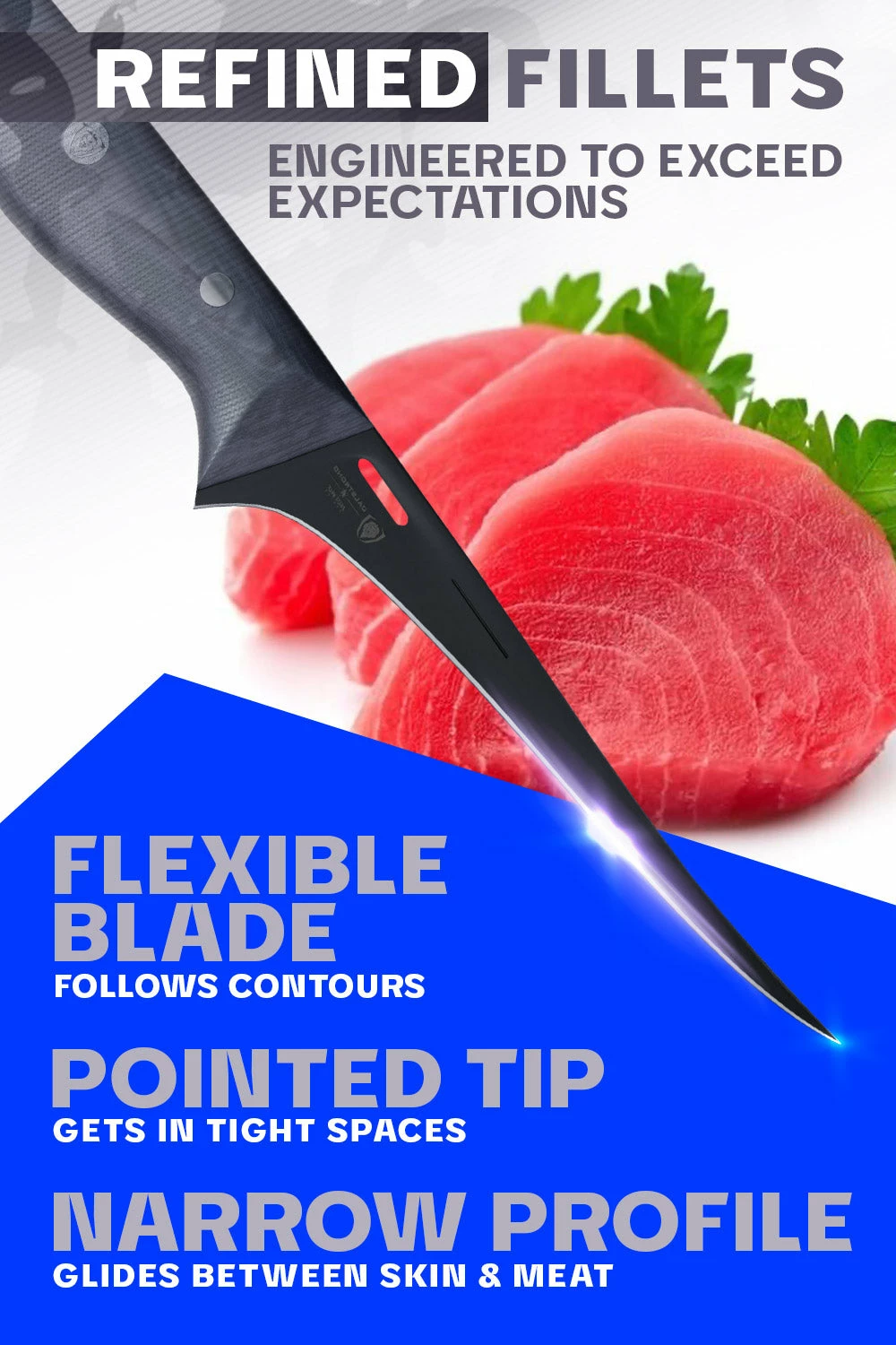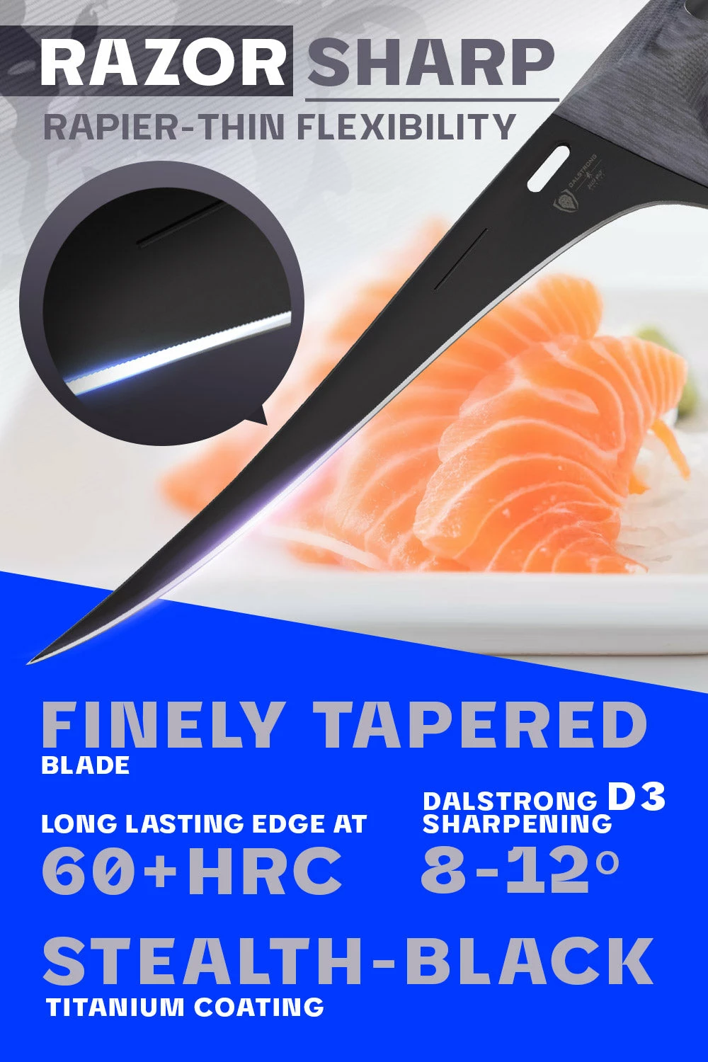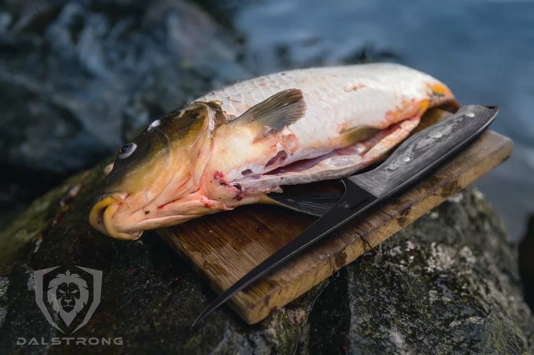 Named after the elite Special Operations Force of the same name, the Delta Wolf Series was created to help daring chefs go further. This rapier-thin, 6″ Filet Knife is wickedly tapered to a breathtaking sliver, the high-carbon steel expertly engineered to fulfill its purpose. The narrow tip of the blade — hand sharpened to 8-12°degrees — allows you to make quick work of your favorite fish and poultry, meeting minimal resistance as you move easily around bone, joints, and in-between skin. With a few deft flicks of the wrist, you can filet, trim, skin, de-bone, de-scale, and butterfly with accuracy and speed.