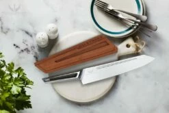 - Includes a hand crafted Acacia wood magnetic sheath to hold the knife securely in place. A smart and stylish way to protect your blades and fingers