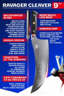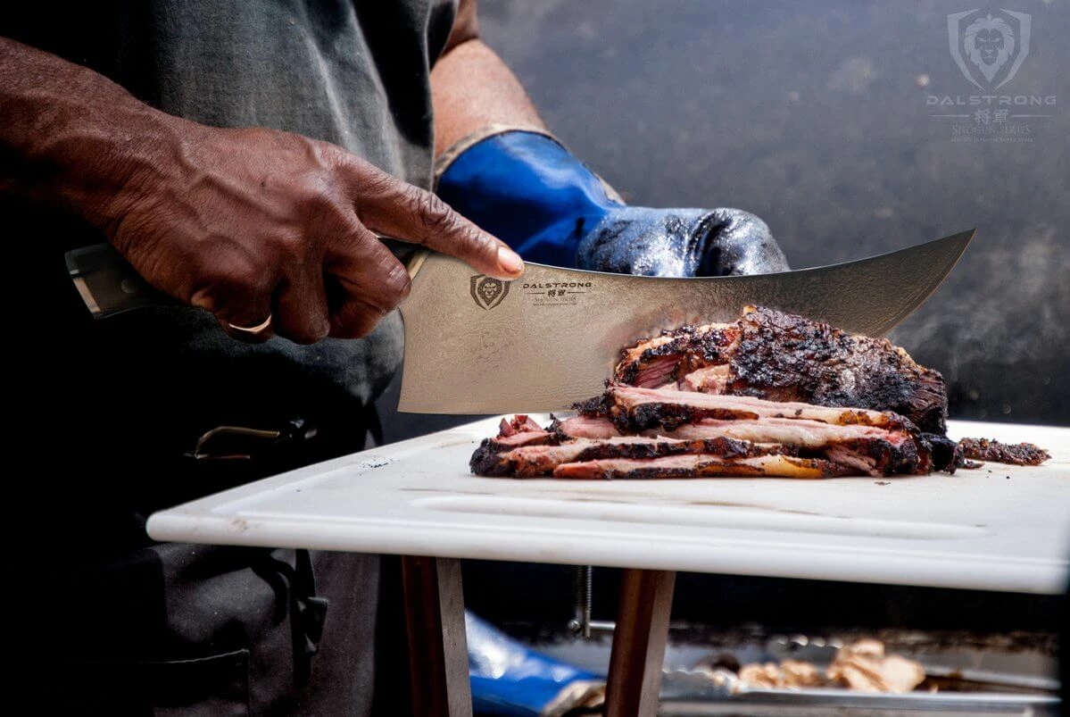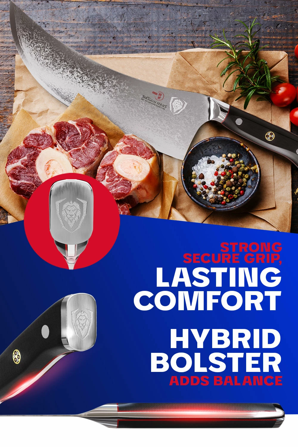 The Dalstrong Shogun Series 9” Heavy Duty Cleaver – ‘The Ravager’ is a menacing powerhouse tool of ruthless chopping efficiency. Designed to break down large cuts of meat and poultry, from pork ribs, to salmon heads, and versatile enough to glide through thick and tough skinned fruits and vegetables, the curved profile, and pointed tip is built to achieve clean, perfect slices through flesh, skin, and sinew. A must have for all pitmasters, butchers, and chefs who prepare large amounts of meat. Unrivalled Performance: Ruthlessly sharp scalpel-like edge is hand finished to a mirror polish within a staggering 8-12°degree angle per side using the traditional 3-step Honbazuke method. With a slightly longer than normal blade length over your typical boning knife, this knife offers more to love, acting as an extension of the arm, performing long, single slices on even the largest cuts of meat, thus reducing wrist and hand fatigue for those high-volume preps. Dalstrong Power: Ultra sharp AUS-10V Japanese super steel cutting core at 62+ Rockwell hardness for extraordinary performance and edge retention. 67 layers of premium high-carbon stainless steel for exceptional strength, durability and stain resistance. Perfectly balanced, the precisely tapered blade minimizes surface resistance and curves inward to maneuver close to the bone, ensuring separating bone and meat is ultra efficient, while the fine tip gets in between joints. Engineered to Perfection: Ultra-premium G-10 handle is impervious to heat, cold and moisture. Military grade with life-long durability. Hand Polished ergonomic handle shape is engineered for superior hand control, agility and comfort. With just enough flex and a thoughtfully designed tapered tip to maneuver through difficult to reach areas, the Shogun Series 8” Flexible Boning knife is a chef and butcher’s best friend.