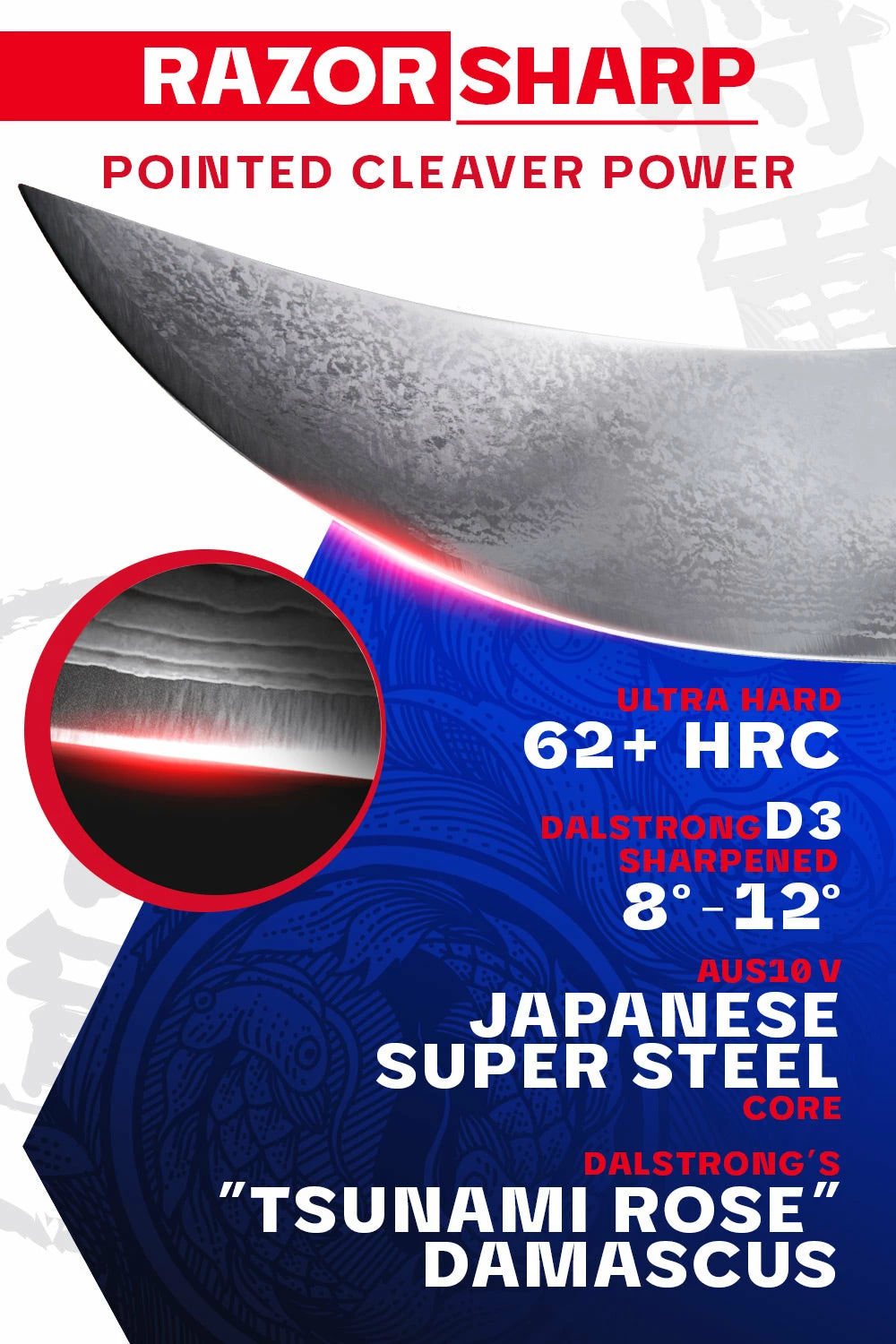 - Featuring Dalstrong’s exquisite Shogun Series Tsunami Rose blade pattern, for striking, stand out beauty.
