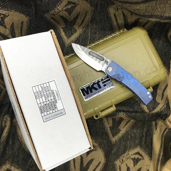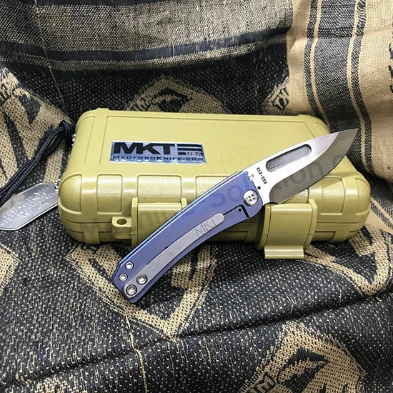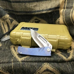 Medford Dress Marauder BLUE Anodized on both Handles. In the tradition of the Praetorian lineup, the Marauder series is available in multiple sizes, the Dress Marauder being the smallest. This delicate beauty is definitely geared towards the more gentlemanly crowd. With a closed length of just over 3″, some would beg to question, Is this truly a Medford knife? Yes it is! Same button head pivot screws and double grooved handle, this tiny folder has a grace and elegance second to none. The Dress comes in Drop Point only and sans breaker.