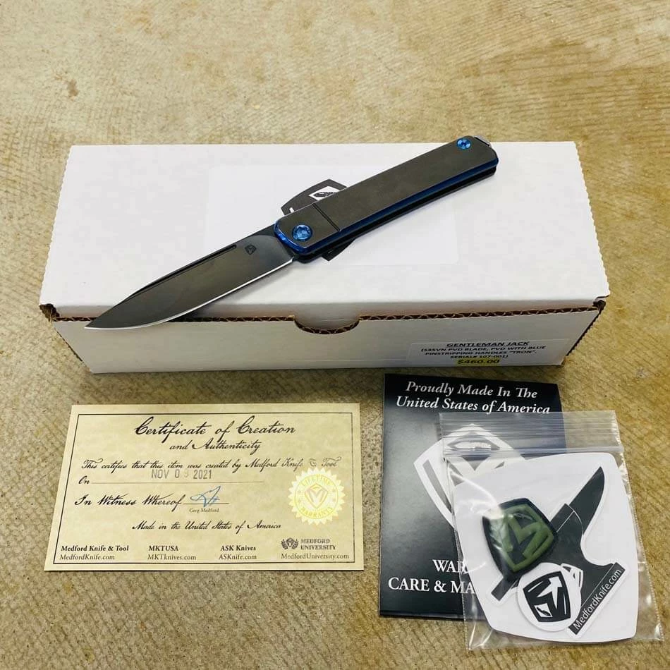 Be the first to review “Medford Gentleman Jack GJ-1 Ti 3.1″ Slip Joint PVD With Blue Pinstripping TRON Knife 107-001” Cancel reply