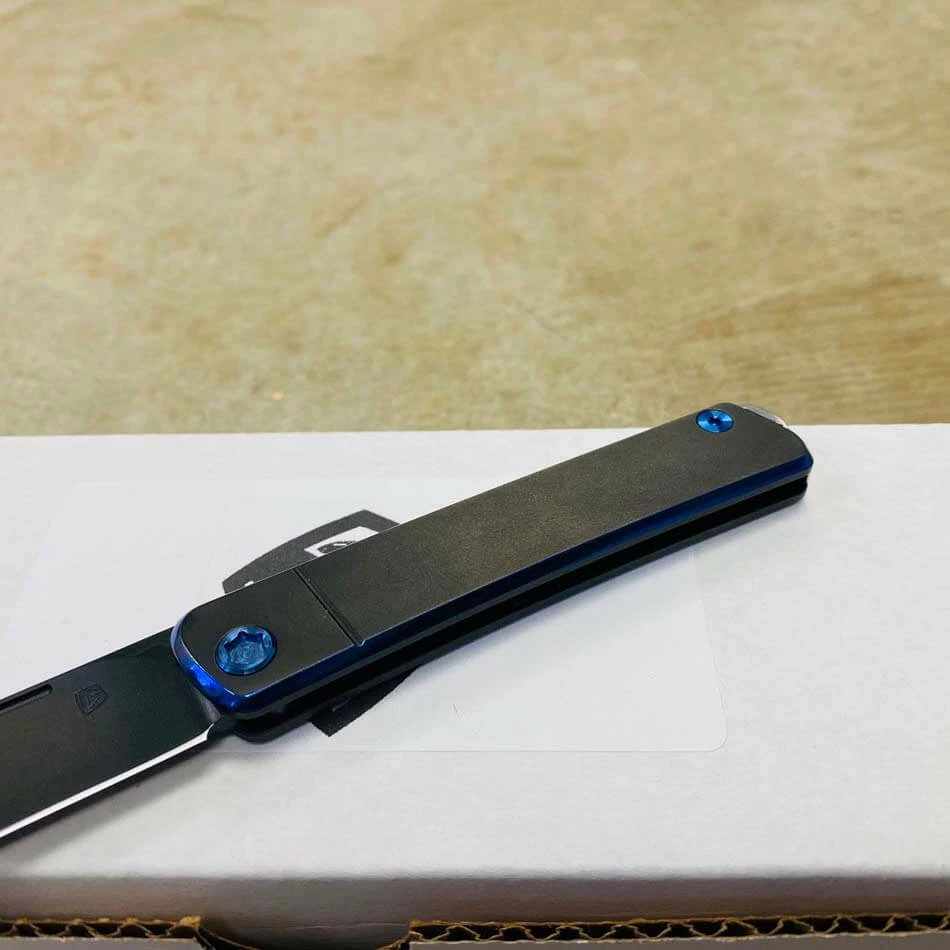 Medford Slim Midi S35VN Satin 3.25″ Tanto Dark Blue Shiny Bamboo Folding Knife Serial 03-106