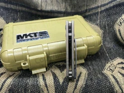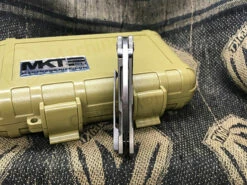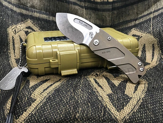 Bronzed Anodized Handle and Bronze Anodized Spring. The brand new Das Hund is small but powerful and sleek. In German “Hund” means “dog” and when Greg was drawing this knife Greg was thinking of it being a reliable and trusted daily companion offensive to few…what’s more fitting than Dog? Since Greg is a Jarhead he’s always loved the German name given to Marines in WW 1, so the name stuck. With our “square” design you’ll find all the components to be of the same material thickness and identical to the “Slim-Midi.” This knife is very every day carry pocket friendly and constructed of Titanium and various blade steels. A great addition to the Medford Knife lexicon of the “worlds biggest little knives!”
