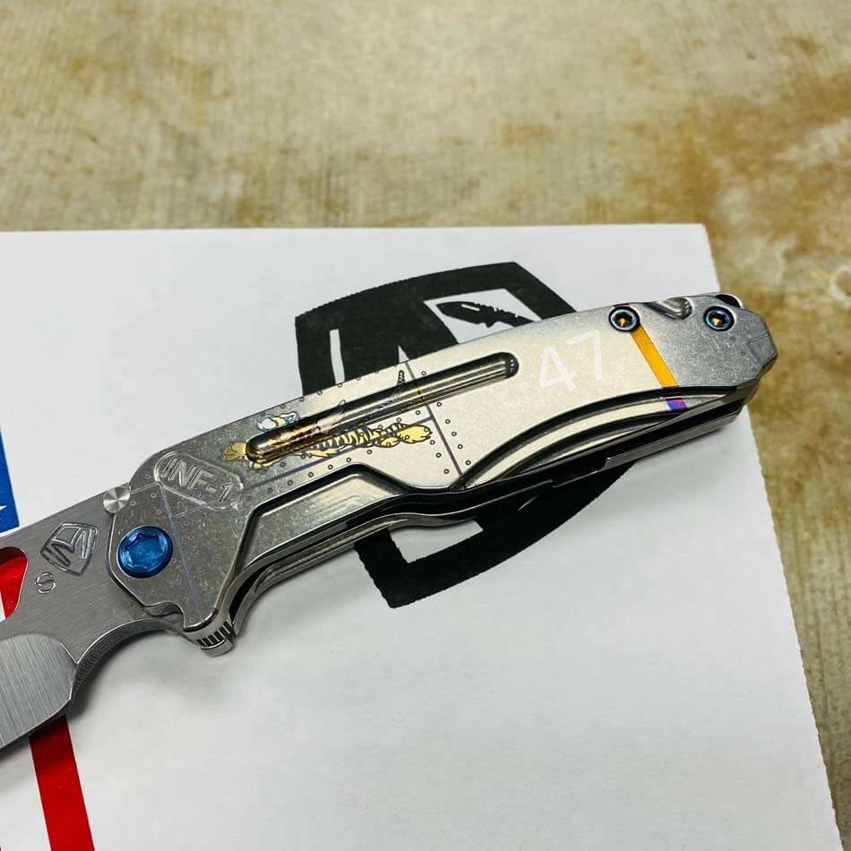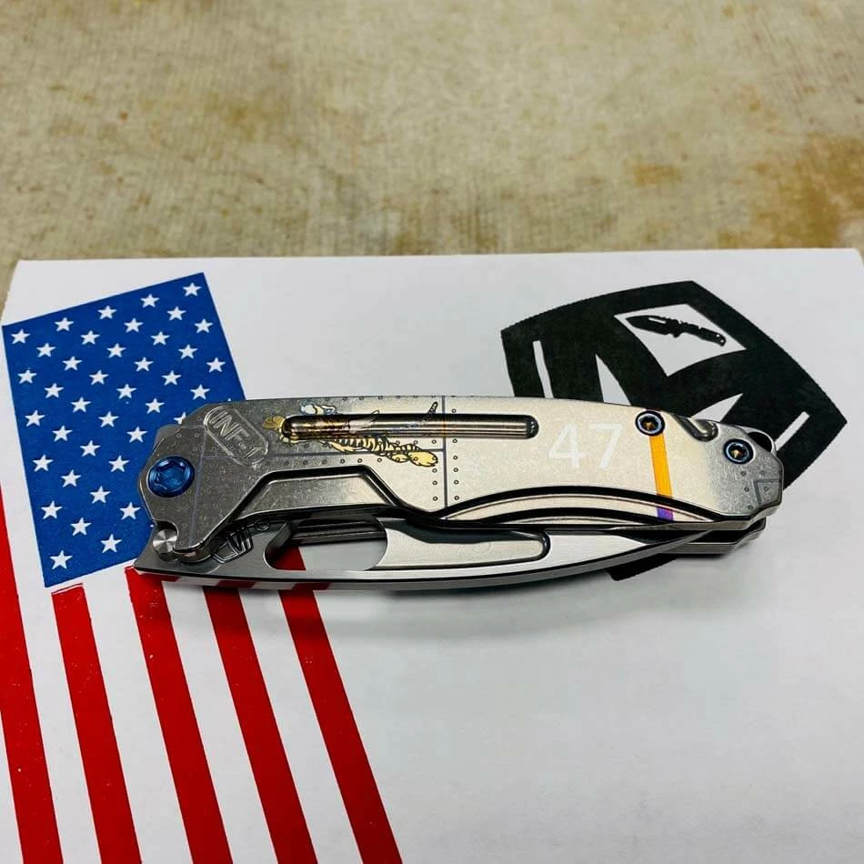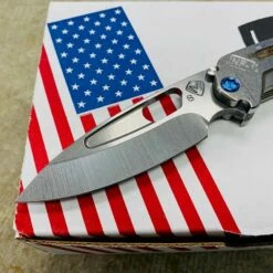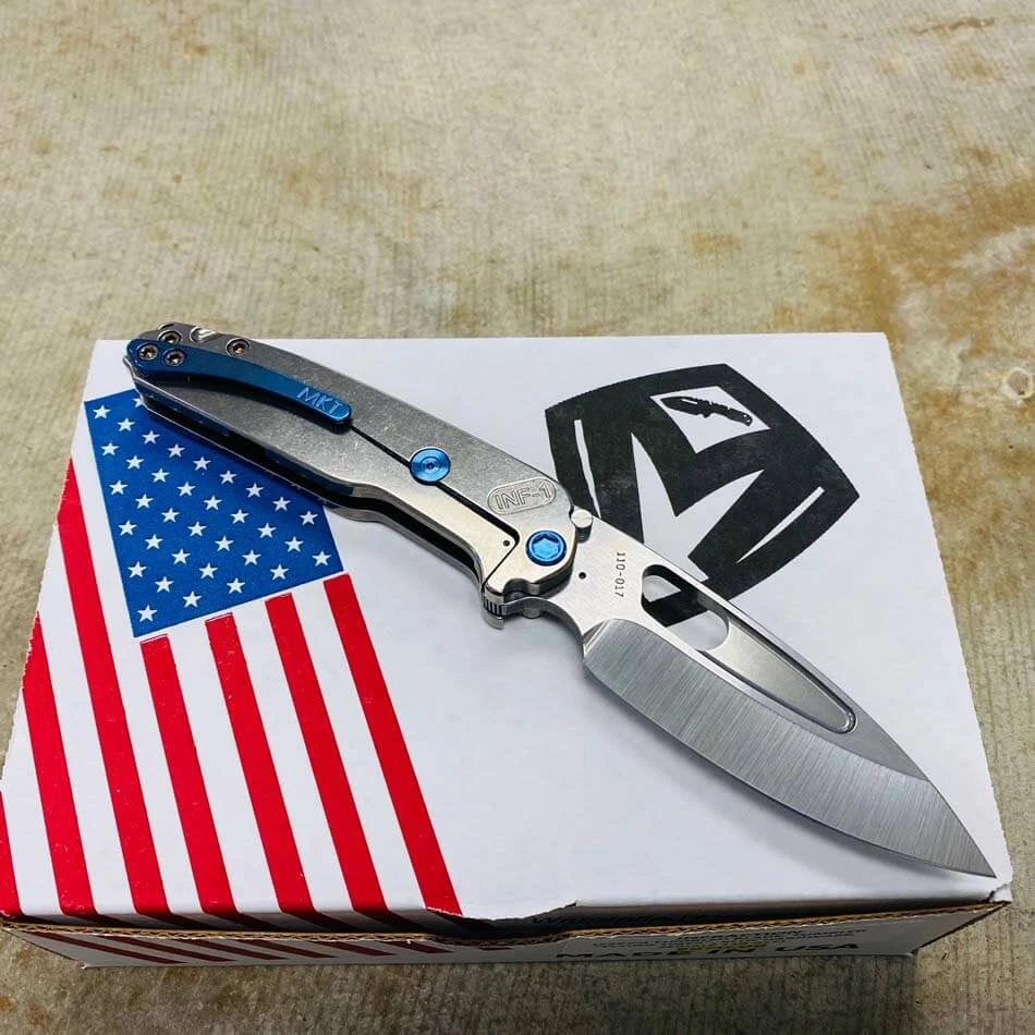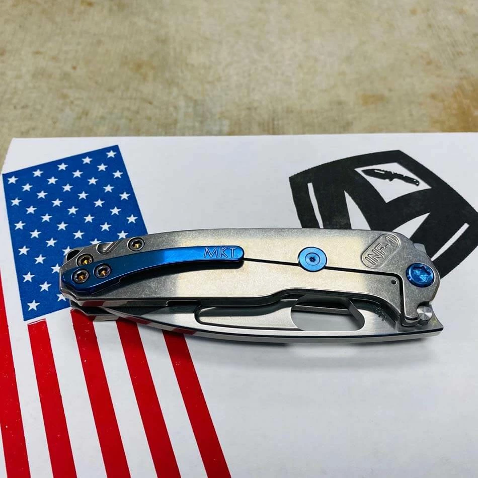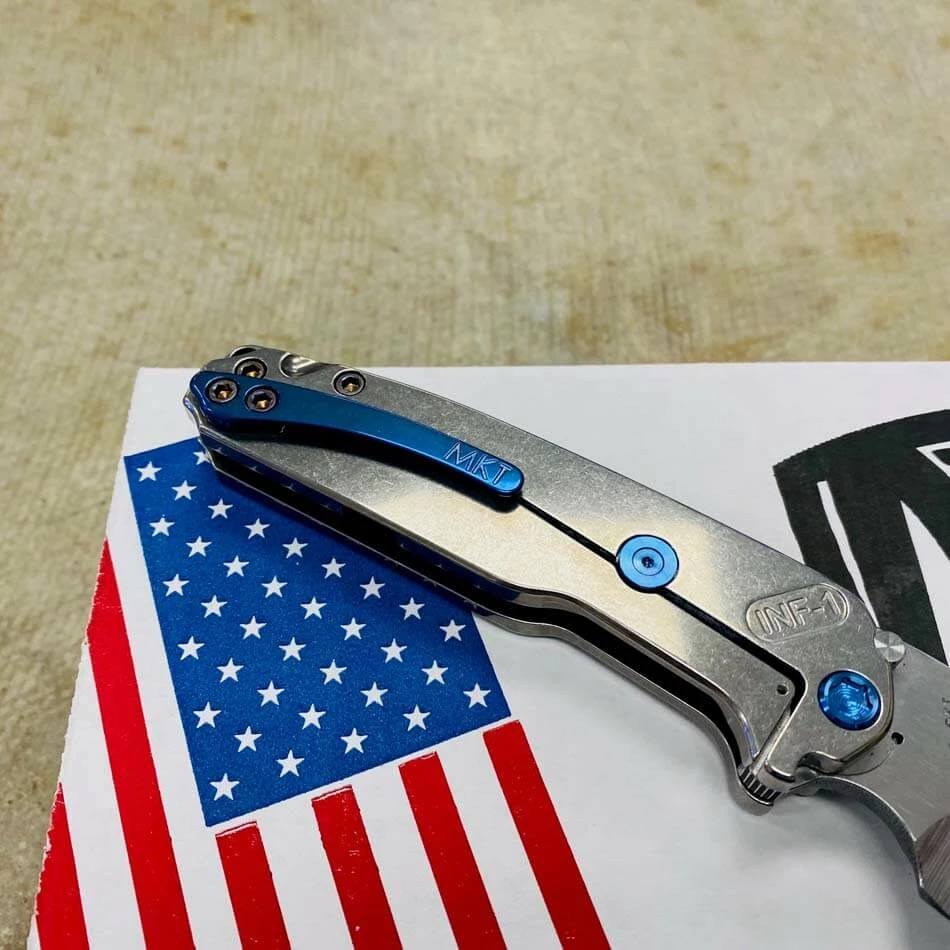 Medford Infraction S35VN tumbled blade, Tumbled Warthog Stars and Bars handle, blue hardware, blue clip, NP3 breaker. For those of you that find a full-sized pocket knife a bit cumbersome, we developed this rocket ship just for you. In Stock in Houston Texas!