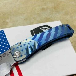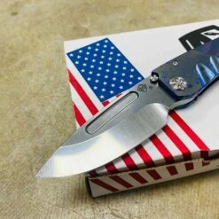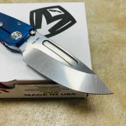 The Marauder is a mean design that utilizes the awesome tip strength of the Flat-Grind and the tried and true performance of a Hollow-Ground main cutting edge. This Combo ground knife has a function driven form that is unique in the knife world. The clean lines of the knife are self-evident, and, in this case, less is more. Note the curved Fuller-groove that doubles to not only lighten the forward weight of the design but also as a sneaky thumb-slide groove for opening. The sides are .187″ Titanium and the blade is .260″ thick. This design gets its name from the A-26 Marauder of WW II repute. The Marauder was known for awesome fire-power and brute force toughness in battle. A great moniker.