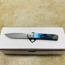 The Marauder is a mean design that utilizes the awesome tip strength of the Flat-Grind and the tried and true performance of a Hollow-Ground main cutting edge. This Combo ground knife has a function driven form that is unique in the knife world. The clean lines of the knife are self-evident, and, in this case, less is more. Note the curved Fuller-groove that doubles to not only lighten the forward weight of the design but also as a sneaky thumb-slide groove for opening. The sides are .187″ Titanium and the blade is .260″ thick. This design gets its name from the A-26 Marauder of WW II repute. The Marauder was known for awesome fire-power and brute force toughness in battle. A great moniker.