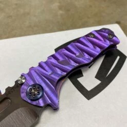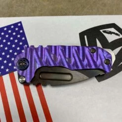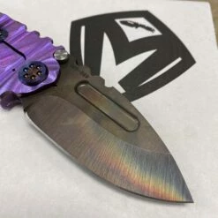 This sexy Medford Micro Praetorian T has an S35VN Vulcan drop point blade, violet predator handles, blue to violet hardware, blue to violet clip, and standard NP3. 2/3 the size of the standard sized Praetorian G/T, this chunky knife offers the same blade and scale thickness as its larger counterpart. You can slip this beefy little monster into smaller pockets, with the same nasty grip and punch of its big brother. So, if you’re looking for a smaller version of the Praetorian G/T you already own, or just want a smaller chunky folder, this knife is definitely for you!