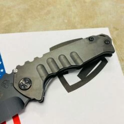 Medford Praetorian Genesis T 3V PVD drop point, PVD handles, PVD hardware, serial 012-094. The Knife was made in its current full size as a printing fluke as a novelty! Who knew it would take the knife world by storm? This was the predetermined size of the design. The Praetorian Genesis is for that “This one is too big, this one is too small” knife nut. The Praetorian Genesis is that middle ground that looks as bad-ass as ever but is still large enough for nearly anything. Limited Edition!