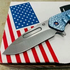Medford Marauder S35V 3.75″ Tumbled Drop Point Blue American Flag Knife 106-014
