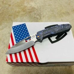 Medford Marauder S35V 3.75″ Tumbled Drop Point Blue American Flag Knife 106-014