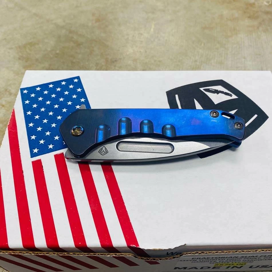 Medford Praetorian Slim Flipper 3.25″ S35VN Drop Point Blue Peaks And Valleys Knife Serial 112-082