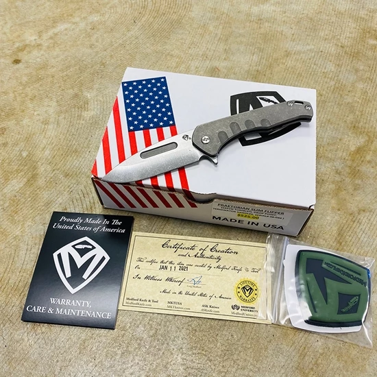 Medford Praetorian Slim Flipper 3.25″ S35VN Drop Point Blue Peaks And Valleys Knife Serial 112-082