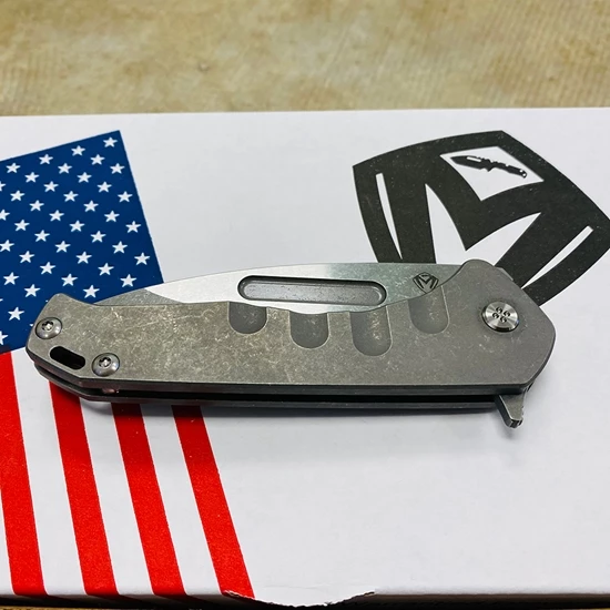 This knife has all the sexy appeal of the standard “Slim” but the action of an auto. The flipper-cam is yummy and well placed for comfort in both the open and closed positions. The blade rides on 18 bearings and has the most satisfying snap both open and closed action. Titanium, S35Vn and all American Made. The design speaks to Greg’s design evolution and our connection to the evolving sentiments within the knife community. Not everyone wants a large aggressive tactical folder but they may want the style and performance. This knife is for them…