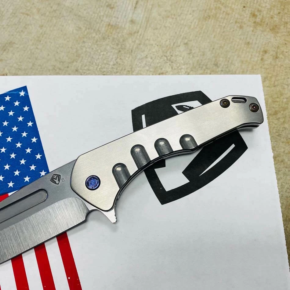 This knife has all the sexy appeal of the standard “Slim” but the action of an auto. The flipper-cam is yummy and well placed for comfort in both the open and closed positions. The blade rides on 18 bearings and has the most satisfying snap both open and closed action. Titanium, S35Vn and all American Made. The design speaks to Greg’s design evolution and our connection to the evolving sentiments within the knife community. Not everyone wants a large aggressive tactical folder but they may want the style and performance. This knife is for them…