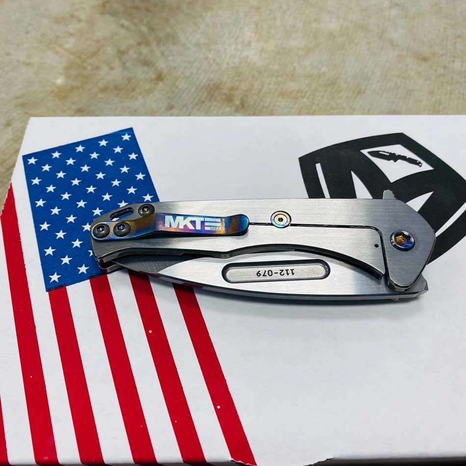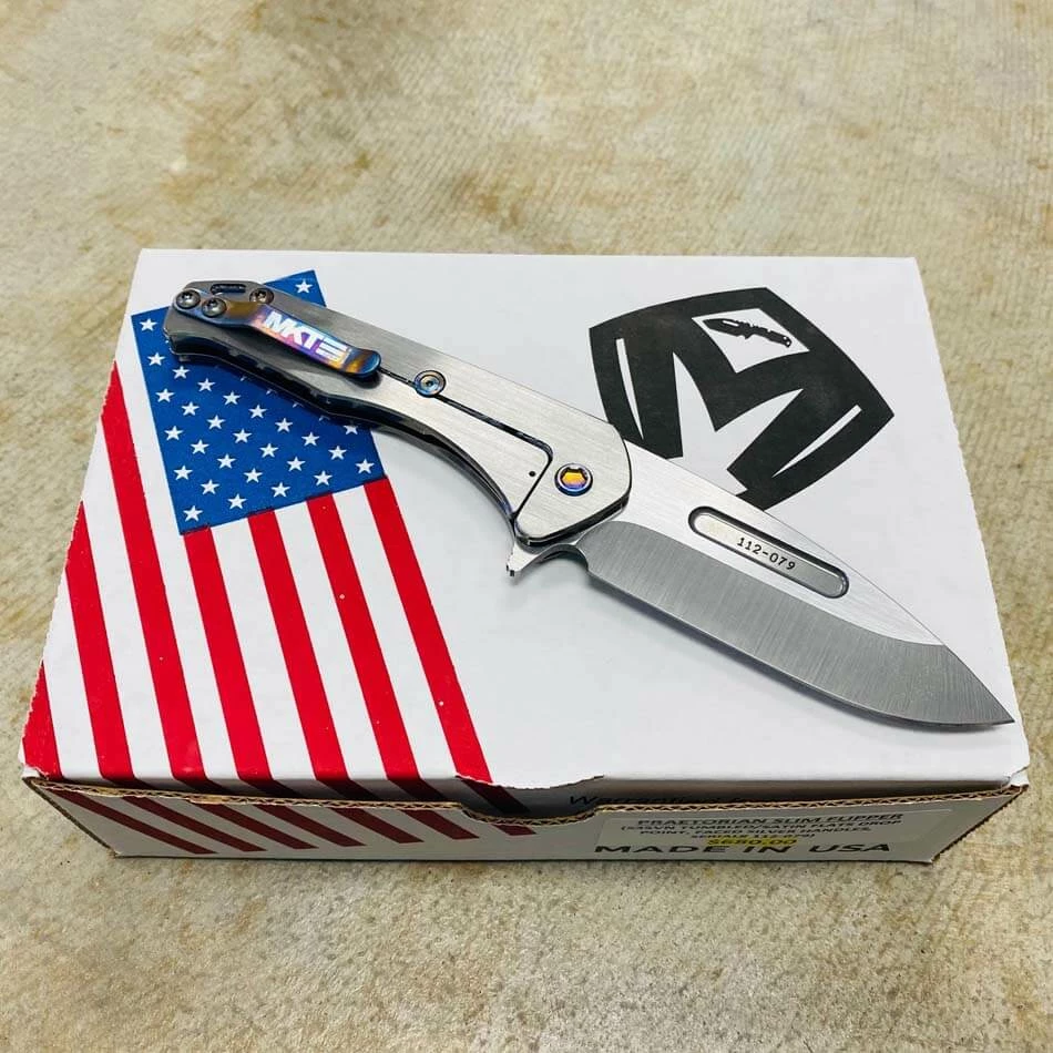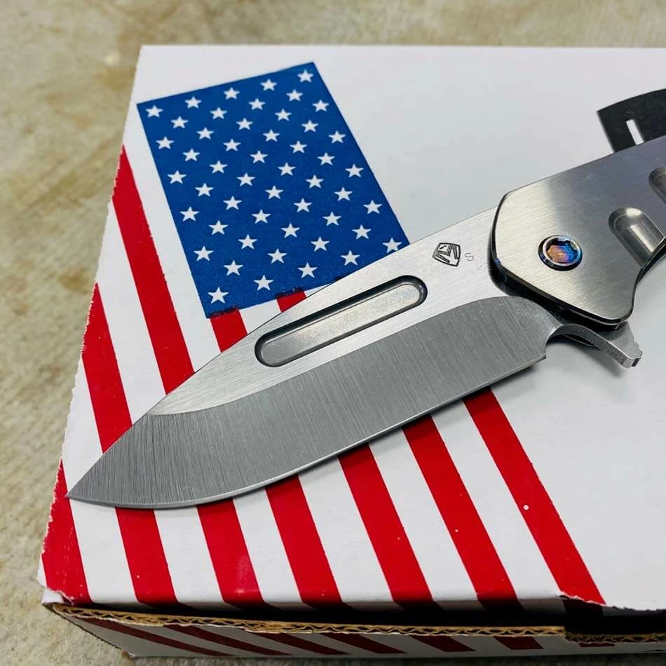 This knife has all the sexy appeal of the standard “Slim” but the action of an auto. Drop point blade, faced silver handles, flamed hardware, flamed clip. The flipper-cam is yummy and well placed for comfort in both the open and closed positions. The blade rides on 18 bearings and has the most satisfying snap both open and closed action. Titanium, S35Vn and all American Made. The design speaks to Greg’s design evolution and our connection to the evolving sentiments within the knife community. Not everyone wants a large aggressive tactical folder but they may want the style and performance. This knife is for them…