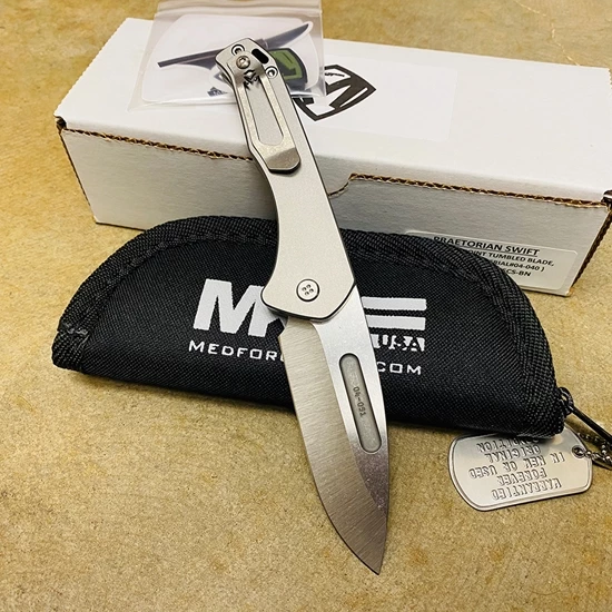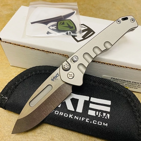 Greg’s twist on America’s most notorious folder. Informed by our best-selling Praetorian line, the Praetorian Swift™ has an unapologetic pedigree. Gray aluminum chassis, Type III class 2 hard ano, S35VN tumbled Drop Point blade, Ti pivot screws, hardware and clip with stainless assembly screws.