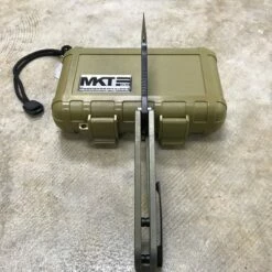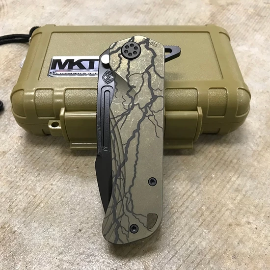 Weather Alert! Several Lightening in the area! The Medford Knife and Tool Proxima started life as the Gigantes. For folks that wanted a larger than life knife it was awesome, but for the rest of planet Earth an adjustment in attitude was required. We drew-down the overall length to 8.8″ with a 4.9″ closed length for the pocket and 3.9″ blade length. All materials are of 3/16″ nominal stock, making for a very EDC friendly thickness. We played with several twists on the original name but as the prototype was carried by Greg, he kept saying, This knife is too awesome to get a spin-off name. Since every time anyone needed to look at the prototype it was in Greg’s pocket… always near, thus: Proxima. This is THE knife carried by Greg these days. As he says: I love the flipper/hilt and the basic meanness of this thing! It just looks bad ass and I look for reasons to snap it out all day What else can we say?