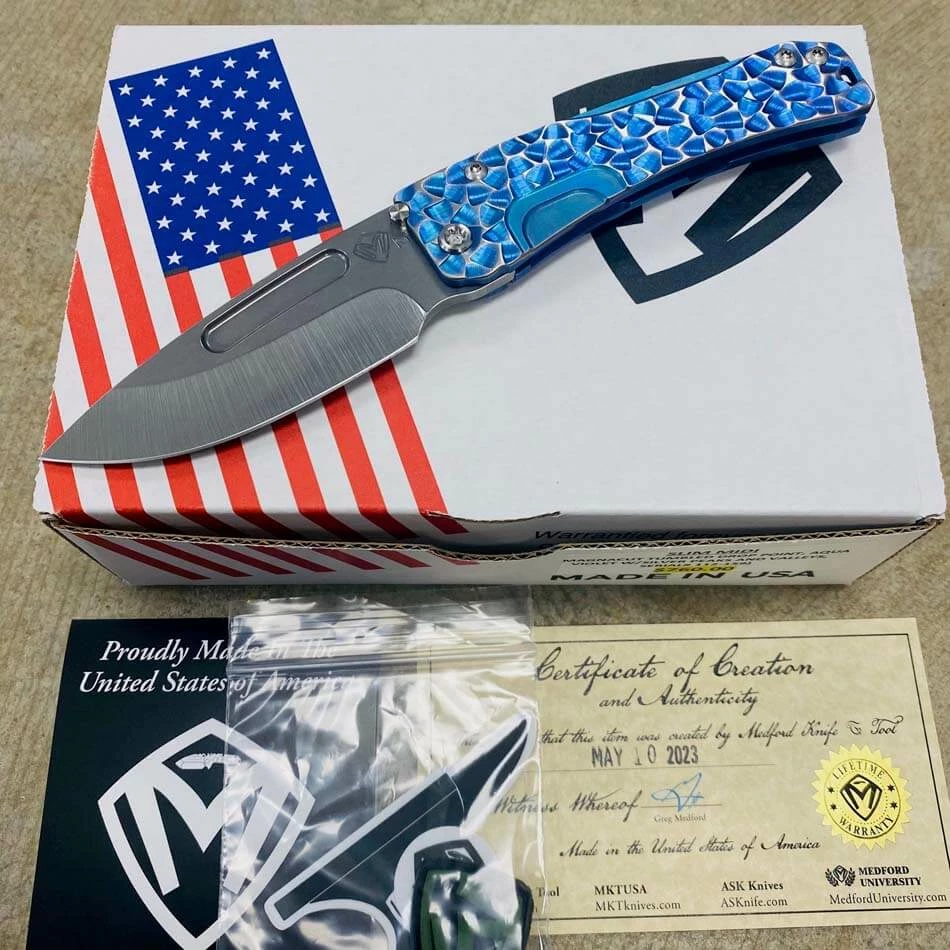 The Medford Slim Midi Knife sports a .125” thick Magnacut blade and 1/8” thick Ti handle and spring, proving to be one of our most pocket friendly EDC knives. Being known for making knives that are more for tactical, adventure and military use, knives such as these open up a whole new market segment for us – the business class. These are customers who want to carry a Medford in their dress slacks, holster or a purse, but when deployed at almost 8” have the Medford familiarity. These are true EDC knives that don’t “get in the way.”.