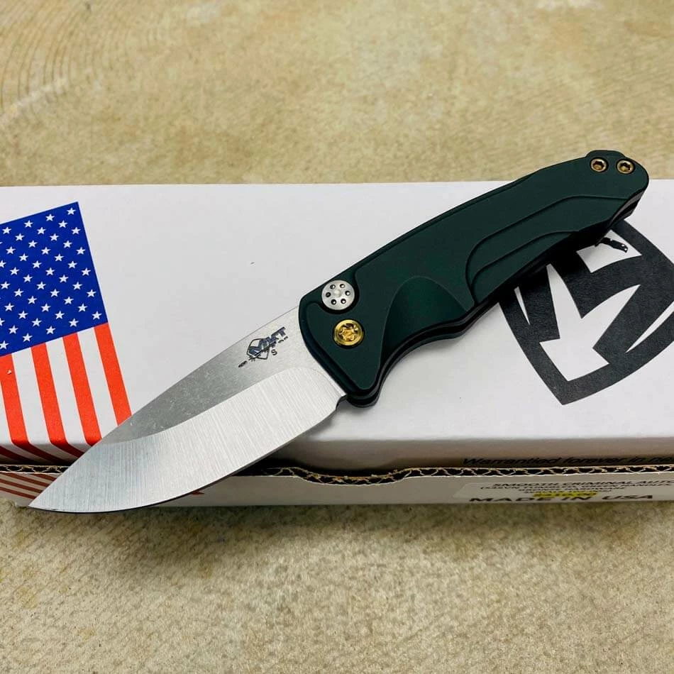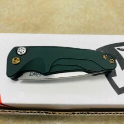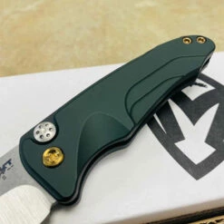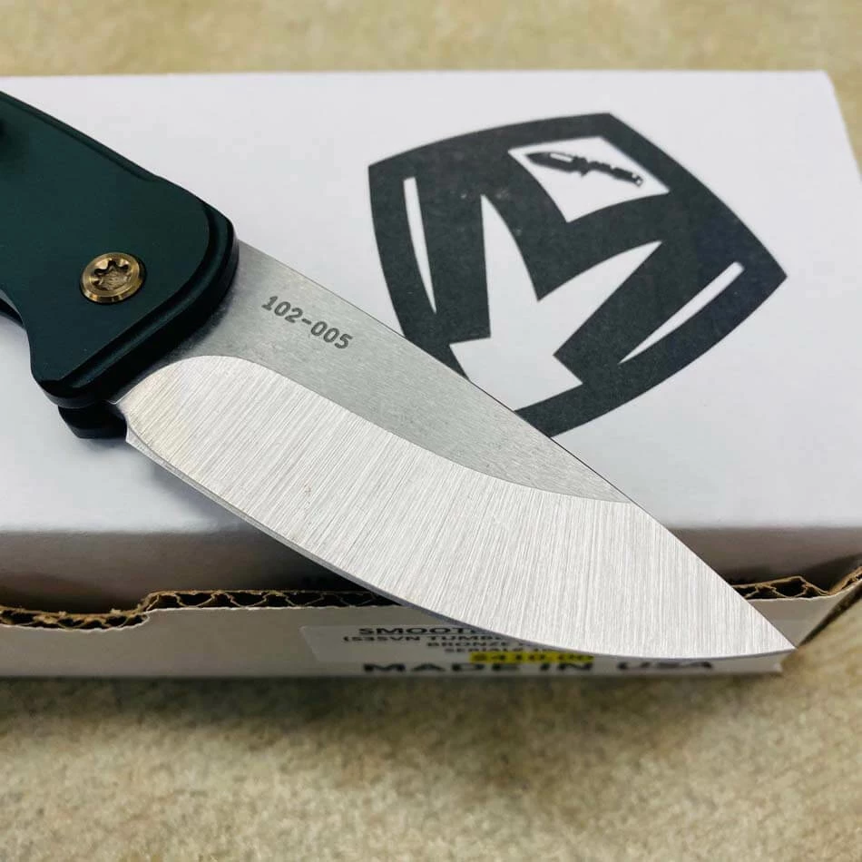 Medford Smooth Criminal Green Handles. Smooth Criminal…Medford’s first aluminum chassis, hard-anodized, button lock knife with a S35VN blade; a game-changing price point for us. All of this, while still upholding our high standards: 100% American made with all the Medford Knife and Tool attributes you’ve come to expect. ***BUTTON LOCK WILL ALWAYS BE STAINLESS STEEL and UN-COATED***