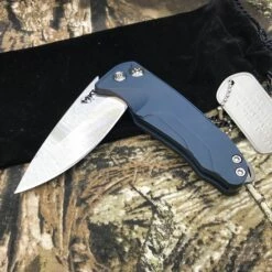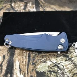 Medford Smooth Criminal Blue. Smooth Criminal…Medford’s first aluminum chassis, hard-anodized, button lock knife with a S35VN blade; a game-changing price point for us. All of this, while still upholding our high standards: 100% American made with all the Medford Knife & Tool attributes you’ve come to expect. ***BUTTON LOCK WILL ALWAYS BE STAINLESS STEEL & UN-COATED***