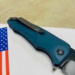 Medford Smooth Criminal Blue Handles. Smooth Criminal…Medford’s first aluminum chassis, hard-anodized, button lock knife with a S45VN blade; a game-changing price point for us. All of this, while still upholding our high standards: 100% American made with all the Medford Knife & Tool attributes you’ve come to expect. ***BUTTON LOCK WILL ALWAYS BE STAINLESS STEEL and UN-COATED***
