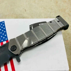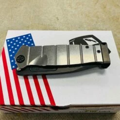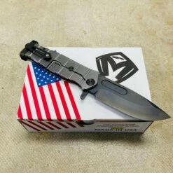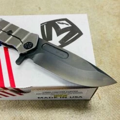 The newest Medford knife is this companion piece to the fixed “Fighter” we call the “USMC Flipper.” This knife has a SATIN blade, tumbled handles, PVD hardware, PVD clip and pommel. This is a unique mix of Titanium components with the very best blade of S35VN heat treated to HRC 58. This a big manly knife that’s as comfortable working, as it is cruising around town in your pocket. There is so much going on with this knife its hard to take in: from the retro milling on the handles, drop-point blade, integral pommel to the bearing pressed into the one-of-a-kind pocket clip. There truly is NOTHING like the USMC Fighter™ Flipper in the knife world. You will want to chop and stab and smash something with this beast in your hand so proceed with caution.
