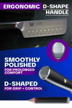 - Traditional Japanese D-shaped handle designed to tuck into the palm of your hand for superior hand control, comfort and agility