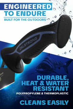 Serious high-tech went into the Night Shark handle. Two incredibly durable, heat resistant plastics are contoured into this super comfortable, ergonomic, textured handle. It feels rough like shark skin, clinging to your palm even when wet. A deep index finger “choil” divot means your grip will never falter. And despite all that texture and shape, it’s still one of the most stain-resistant and easy to clean surfaces technology can provide. A fierce blue streak runs through the otherwise matte black handle.