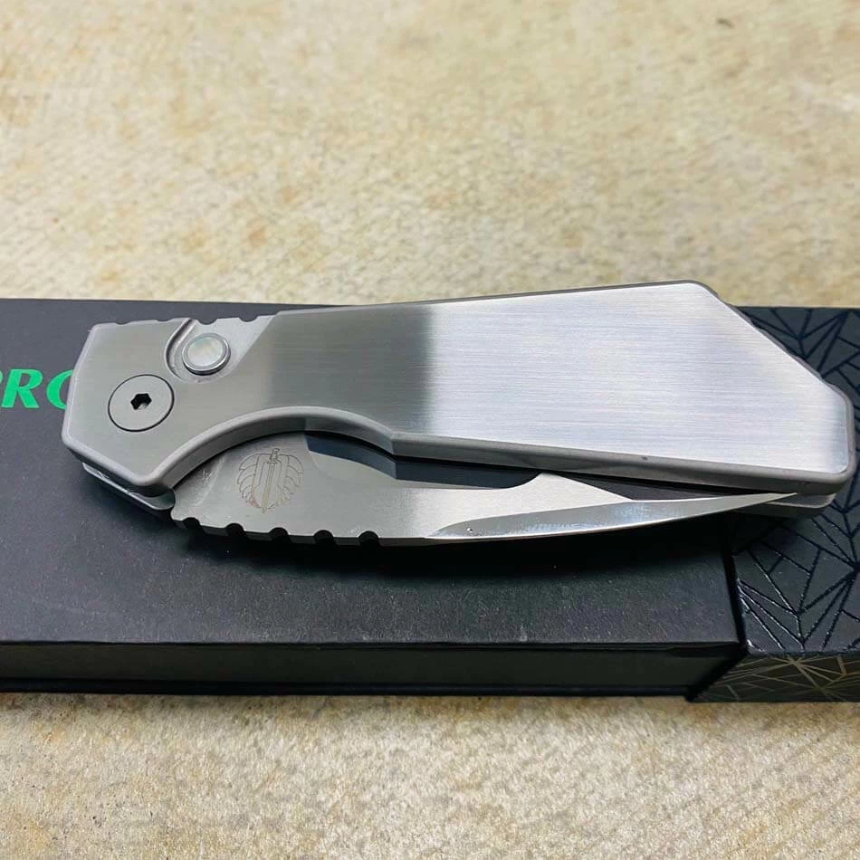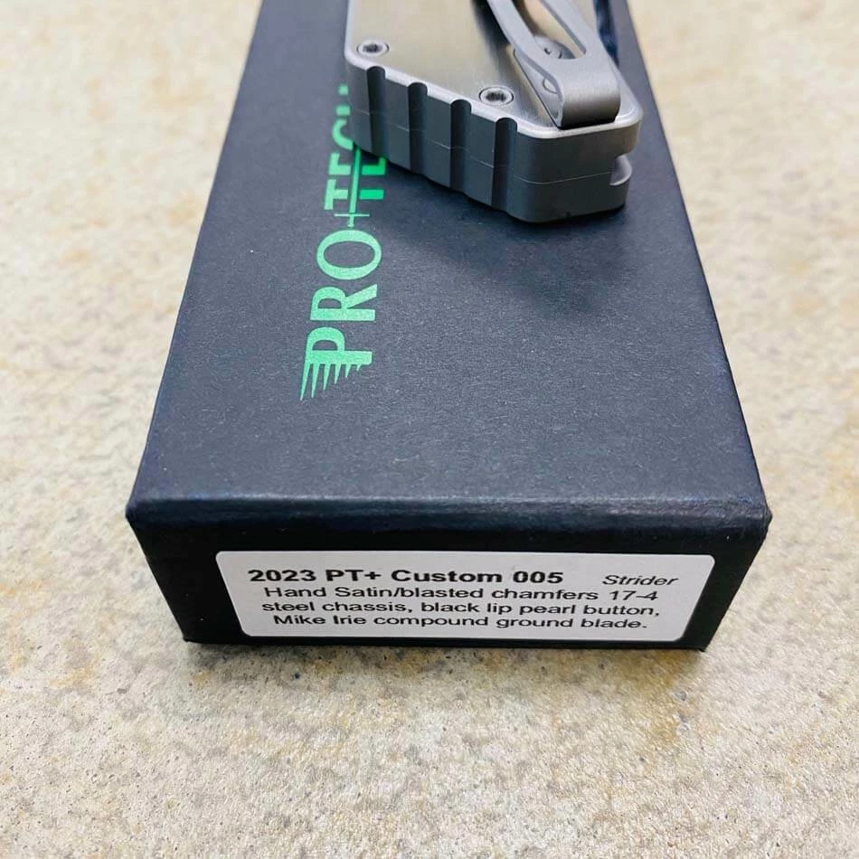 Be the first to review “ProTech 2023 Strider PT+ Custom 005 Hand Satin/Blasted Chamfers 17-4 Stainless Steel Chassis, Black Lip Pearl Button, Mike Irie 154CM Blade Automatic Knife BLADE SHOW 2023” Cancel reply