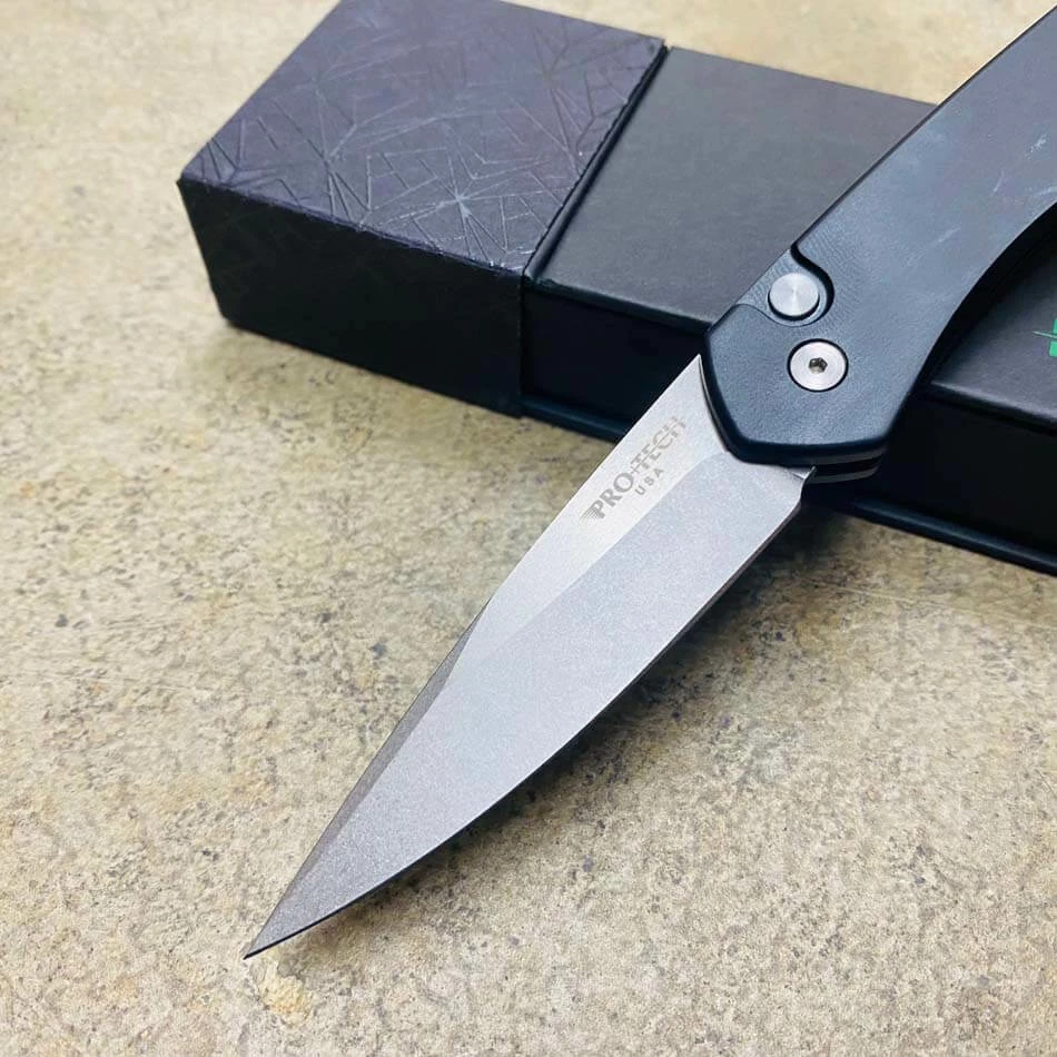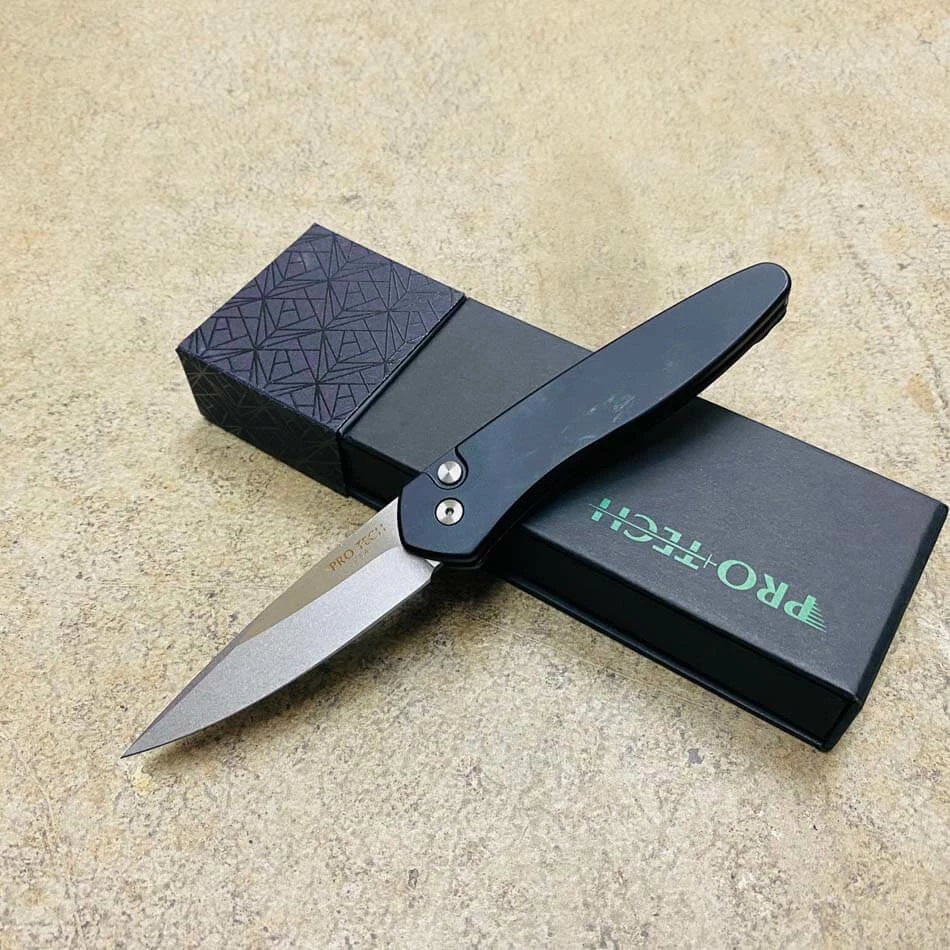 Newport – Sleek, lightweight, quick, and Winner of the 2013 Blade Magazine Investor/Collector Knife of the Year Award! This fantastic push button auto knife features a 3 inch S35-VN steel Blade, a smooth and fast coil spring action, deep carry pocket clip and comes in a wide range of variations.