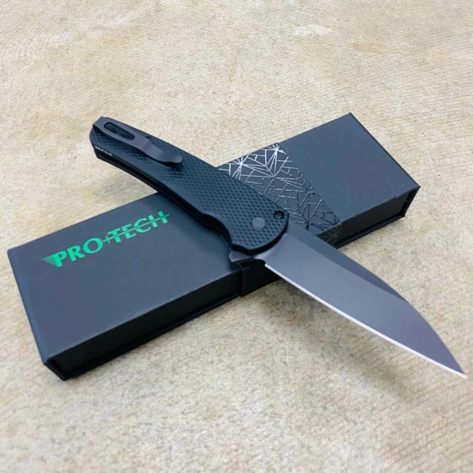 The Pro-Tech Malibu is a fashionable flipper knife with every bit of precision you’ve come to expect from Pro-Tech. It flies open with the flipper action, with no springs attached, so it’s legal in more places (like Malibu, for instance). It locks up with the plunge lock, and the Wharncliffe blade easily handles all your EDC (Every-Day Carry) tasks.