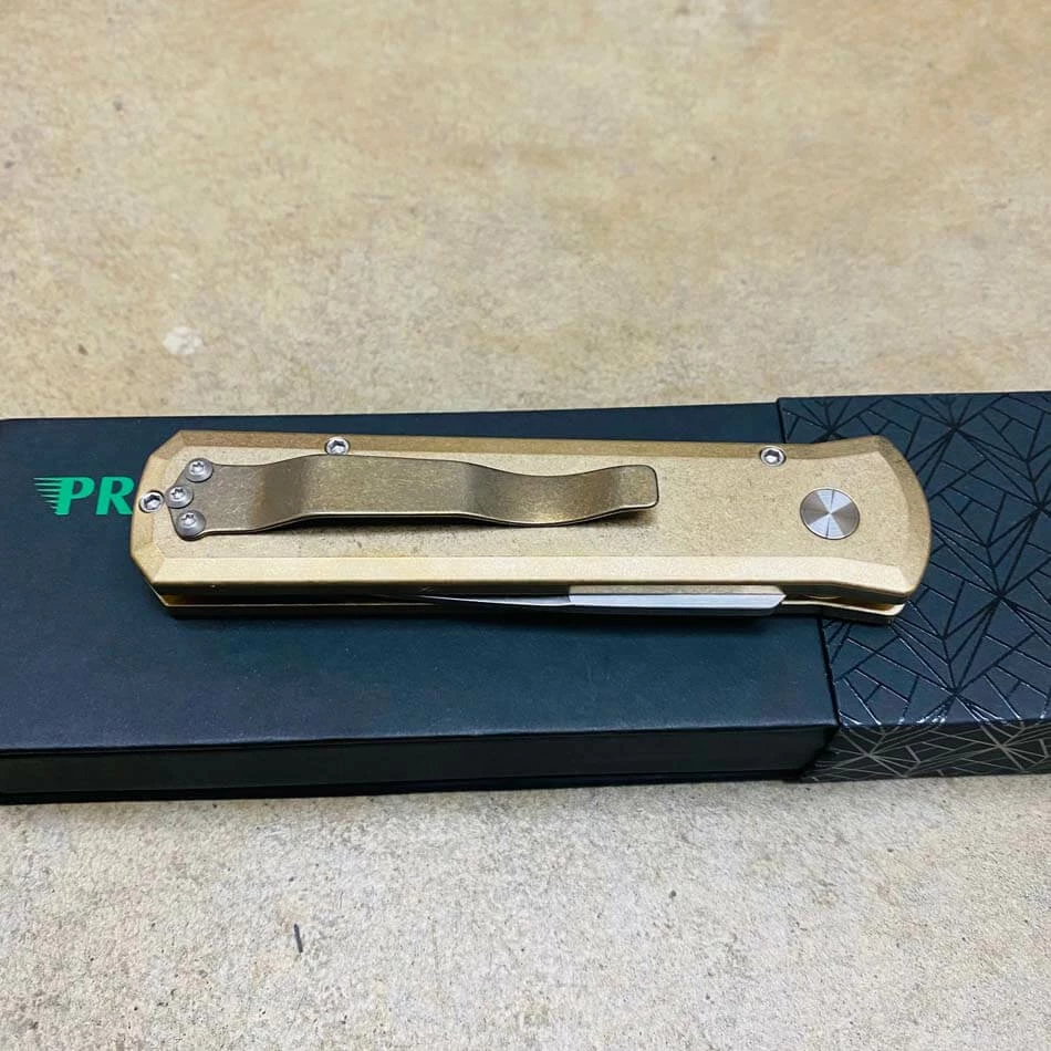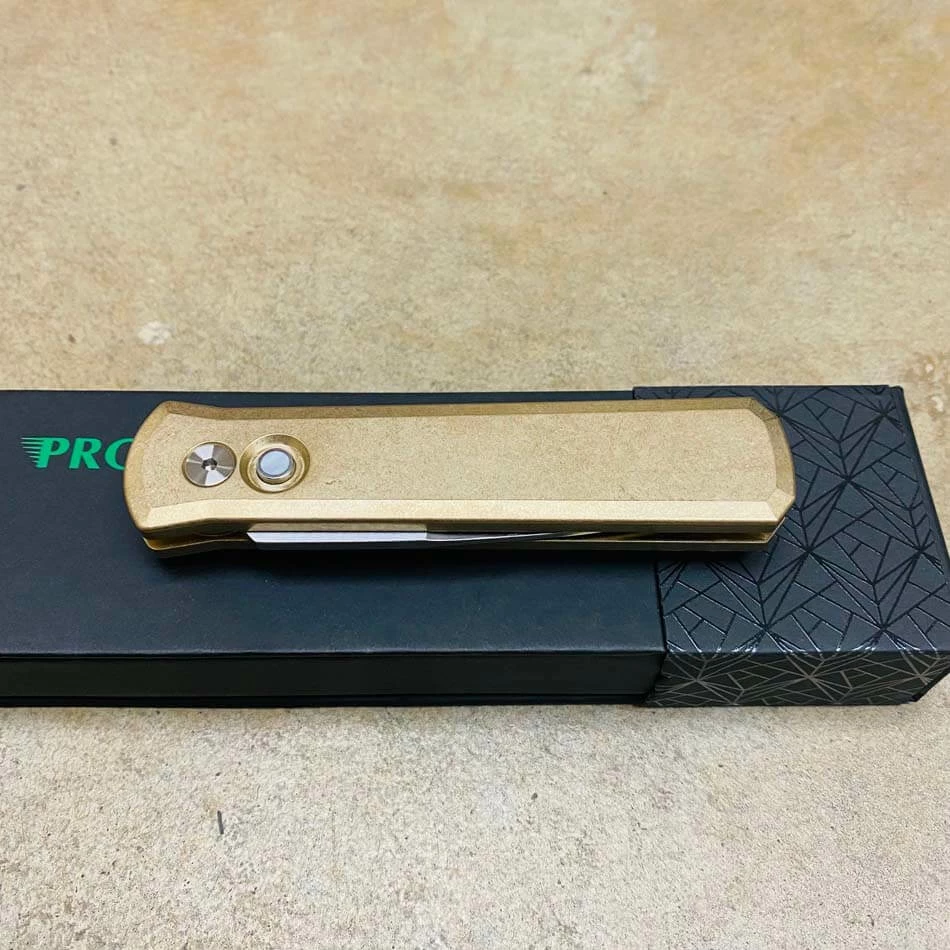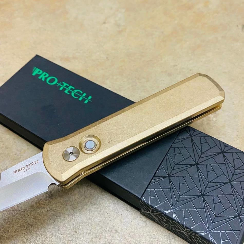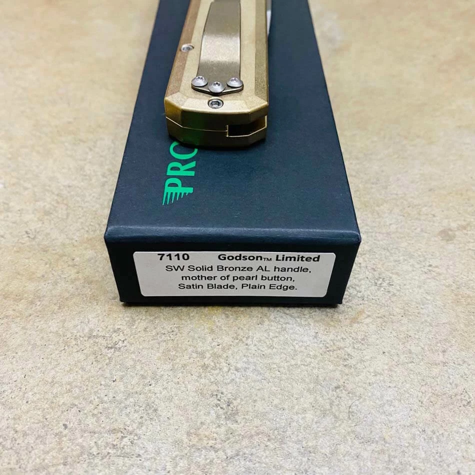 Be the first to review “PROTECH 7110 Godson 3.15″ LIMITED Stonewash Solid Bronze AL Handle Satin Blade Mother Of Pearl Button Auto Knife” Cancel reply