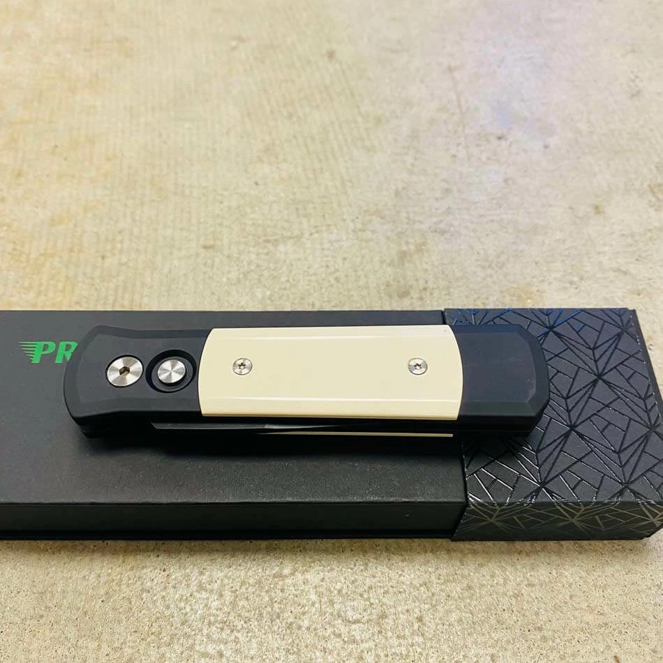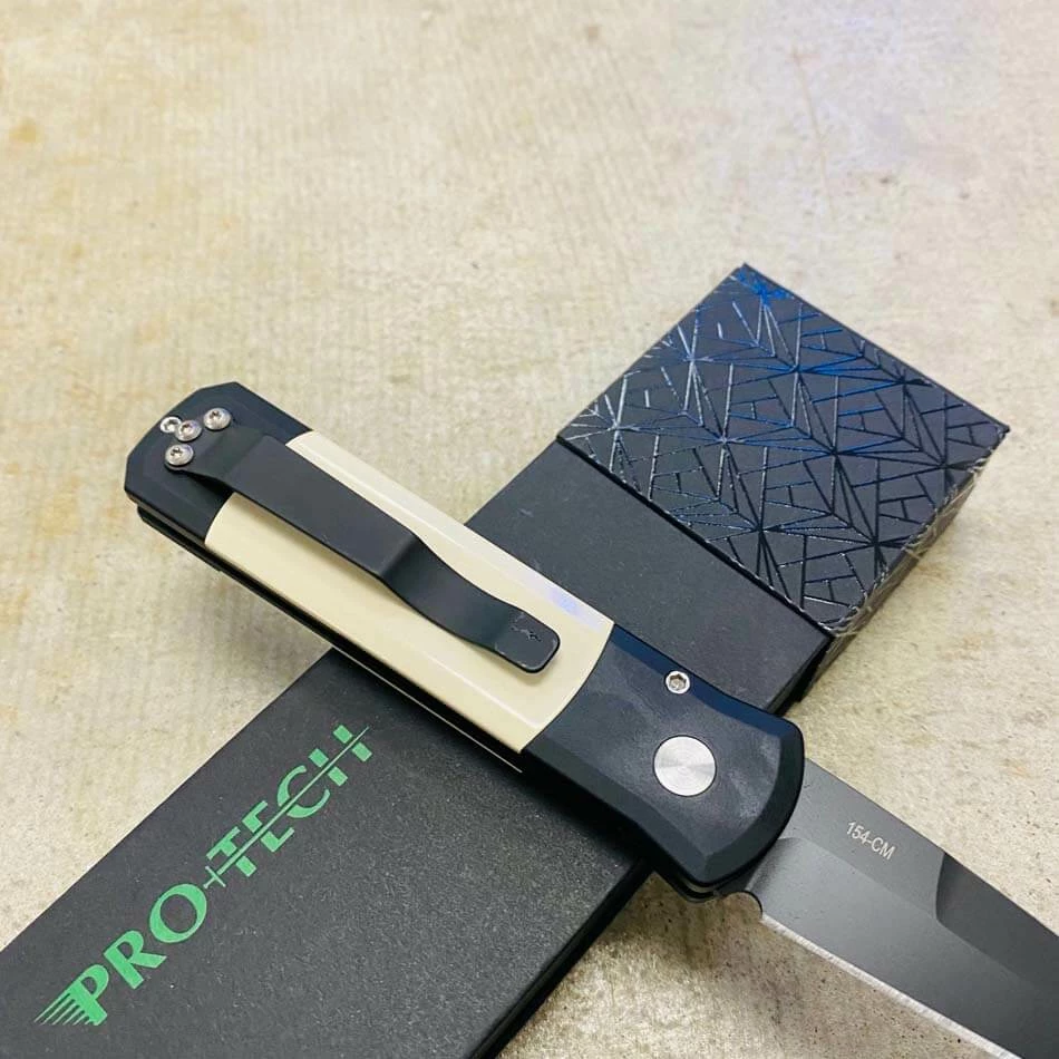 Be the first to review “PROTECH 752 Godson 3.15″ Tuxedo Black Handle Ivory Micarta Inlays Black Blade Plain Edge Knife” Cancel reply