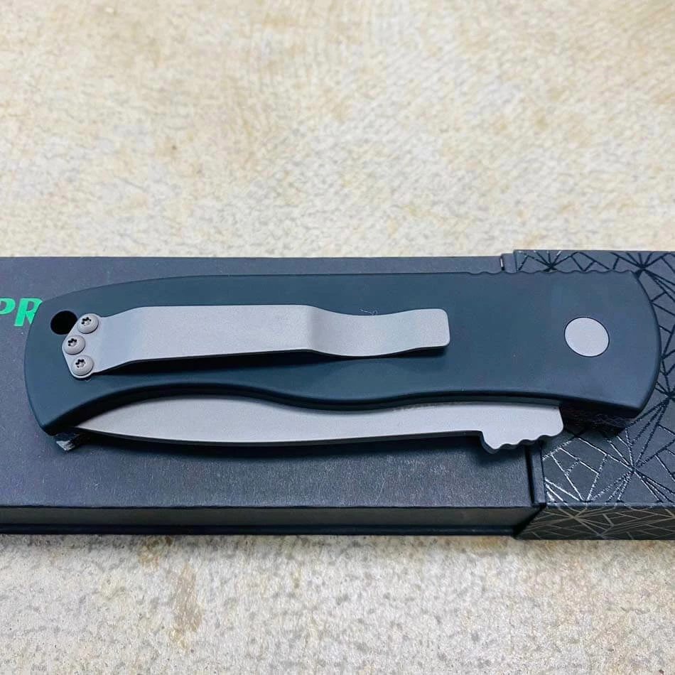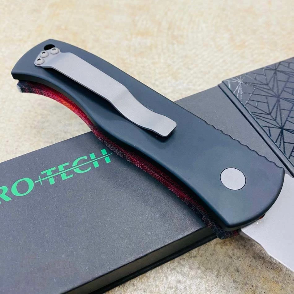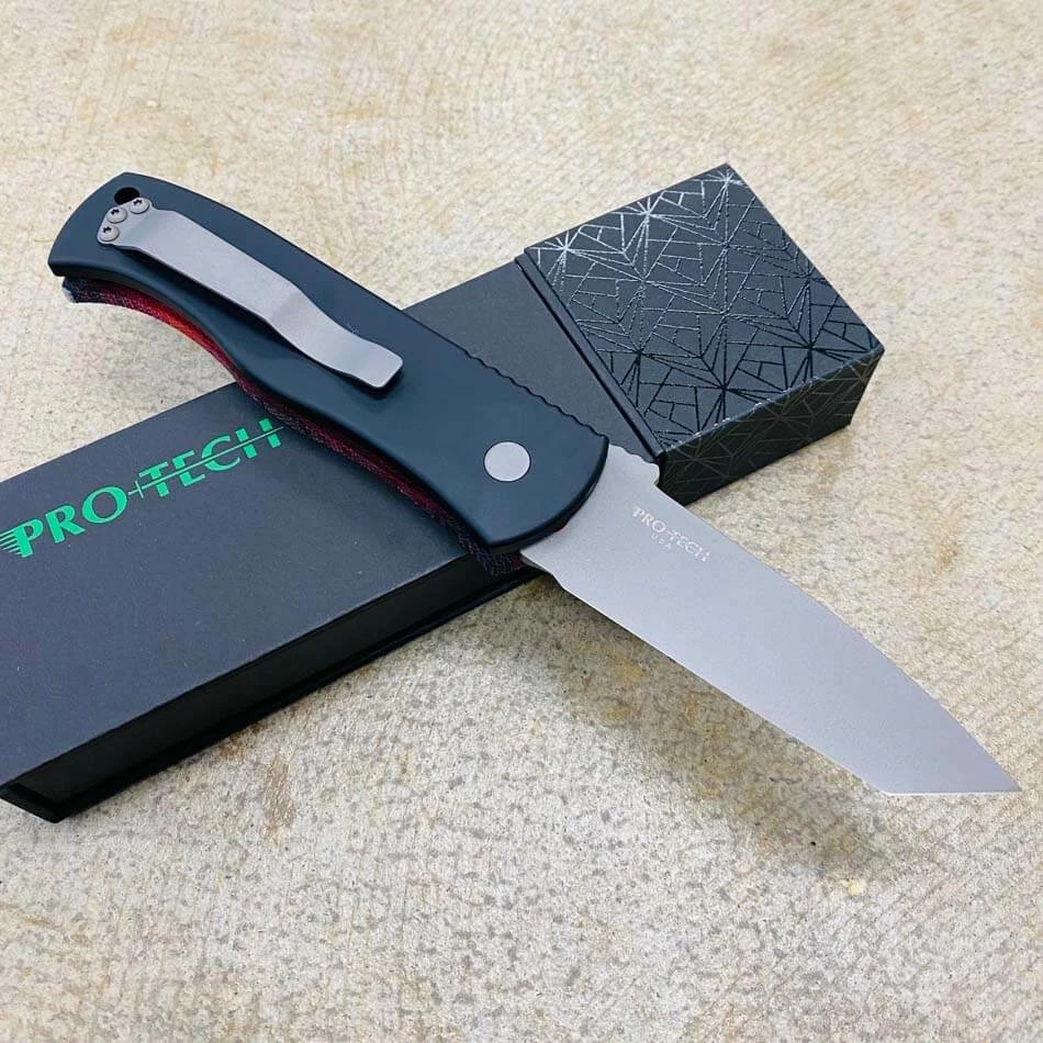 The EMERSON E7T, possibly the most famous tactical knife design on the planet proudly produced to exact Emerson specs with Pro-Tech’s superior coil spring action mechanism! This Pro-Tech produced automatic version of the CQC7 features a 3.25” chisel tanto blade, super ergonomics and the hard use tactical design experience of Mr. Ernest Emerson. One of our most popular knife models!